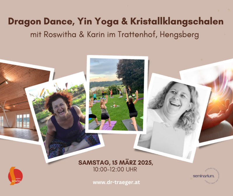 Dragon Dance, der yangige Part von Yin Yoga, bringt deinen Energiefluss in Bewegung, während Yin Yoga mit Kristallklangschalen dich in tiefe Entspannung führt. Weitere Infos und Anmeldung: